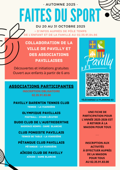 Lire l'article complet Faites du sport - Automne 2025 Faites du sport - Automne 2025 Du 20 au 31 octobre, venez faire découvrir gratuitement une nouvelle activité à vos enfants (à partir de 6 ans) !Inscriptions obligatoires auprès de la [...]