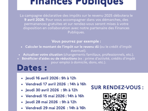 Permanences France Services : Finances Publiques La campagne déclarative des impôts sur le revenu 2025 débutera le 9 avril 2026. Pour vous accompagner dans vos démarches, des permanences gratuites et sur rendez-vous seront mises à votre disposition en collaboration avec notre partenaire ... Article publié le mardi 24 mars 2026