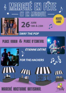 Le marché en fête et en musique aura lieu le vendredi 26 juin 2026 de 19h à 23h sur la place Varin ainsi que la place d’Esneval.